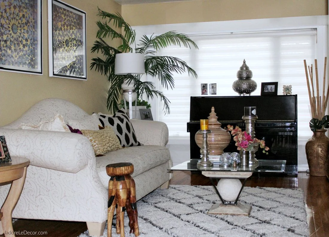 www.JadoreLeDecor.com | See how I used a simple roll of nail head trim to upgrade my traditional sofa. | Small space living | Furniture Upgrades