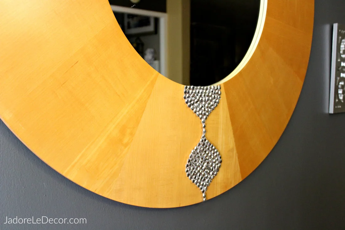 et the DIYer beware: if you're planning to attempt a similar makeover, know that a little bit of bling goes a long way! I can't imagine what this would have looked like had I attempted to bling out the entire mirror. But what I love most about this makeover is that if it ever grows old, I can just remove the appliqués and start over with a new idea. Love that!