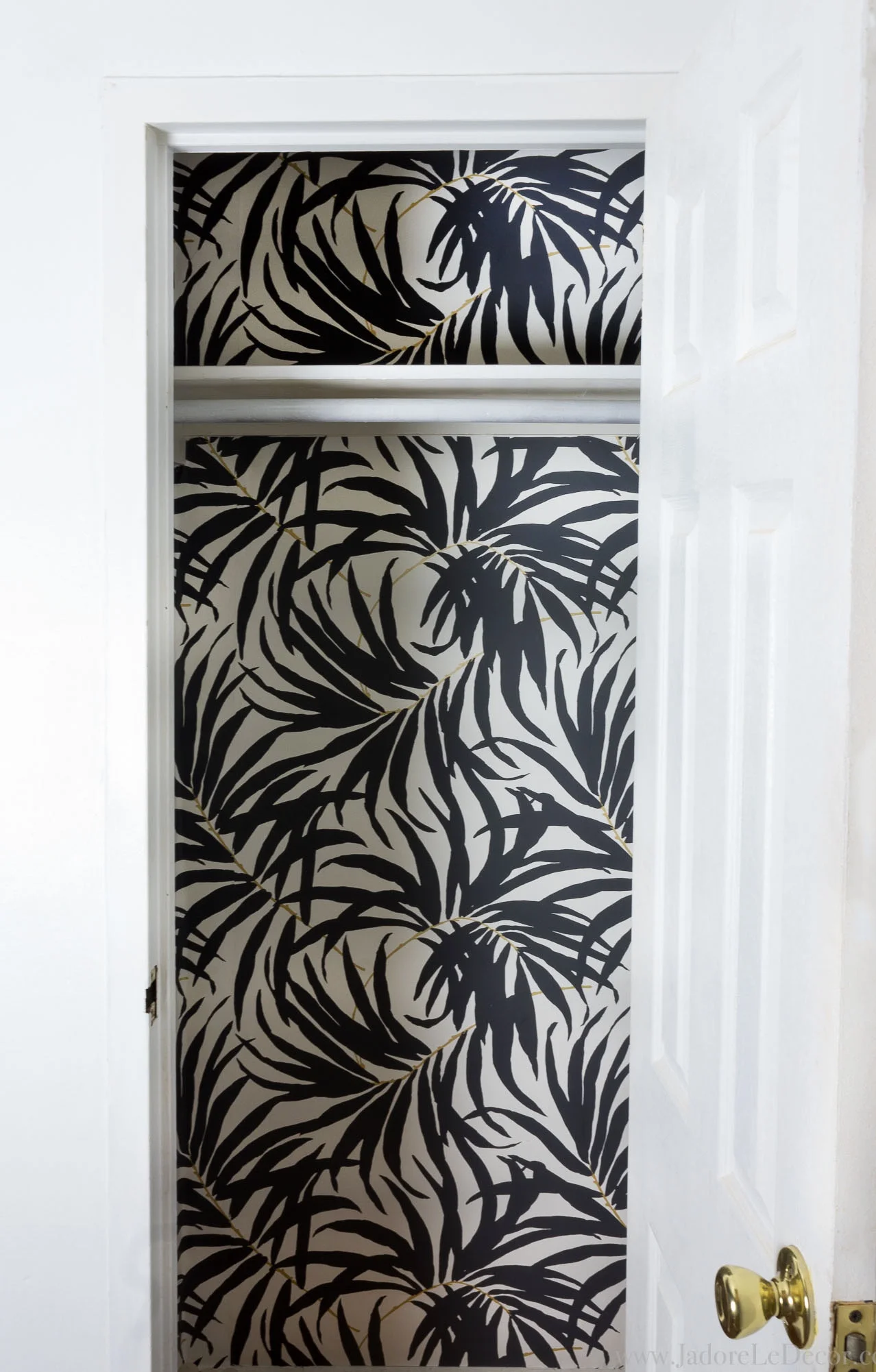 I took things a step further and wallpapered my closet with a roll I had left over from another project. It was a lot of work moving around in that tiny box let me tell you! I doubt I'll ever do it again. But after 2 hours and a bit of touch up paint, here was my result.